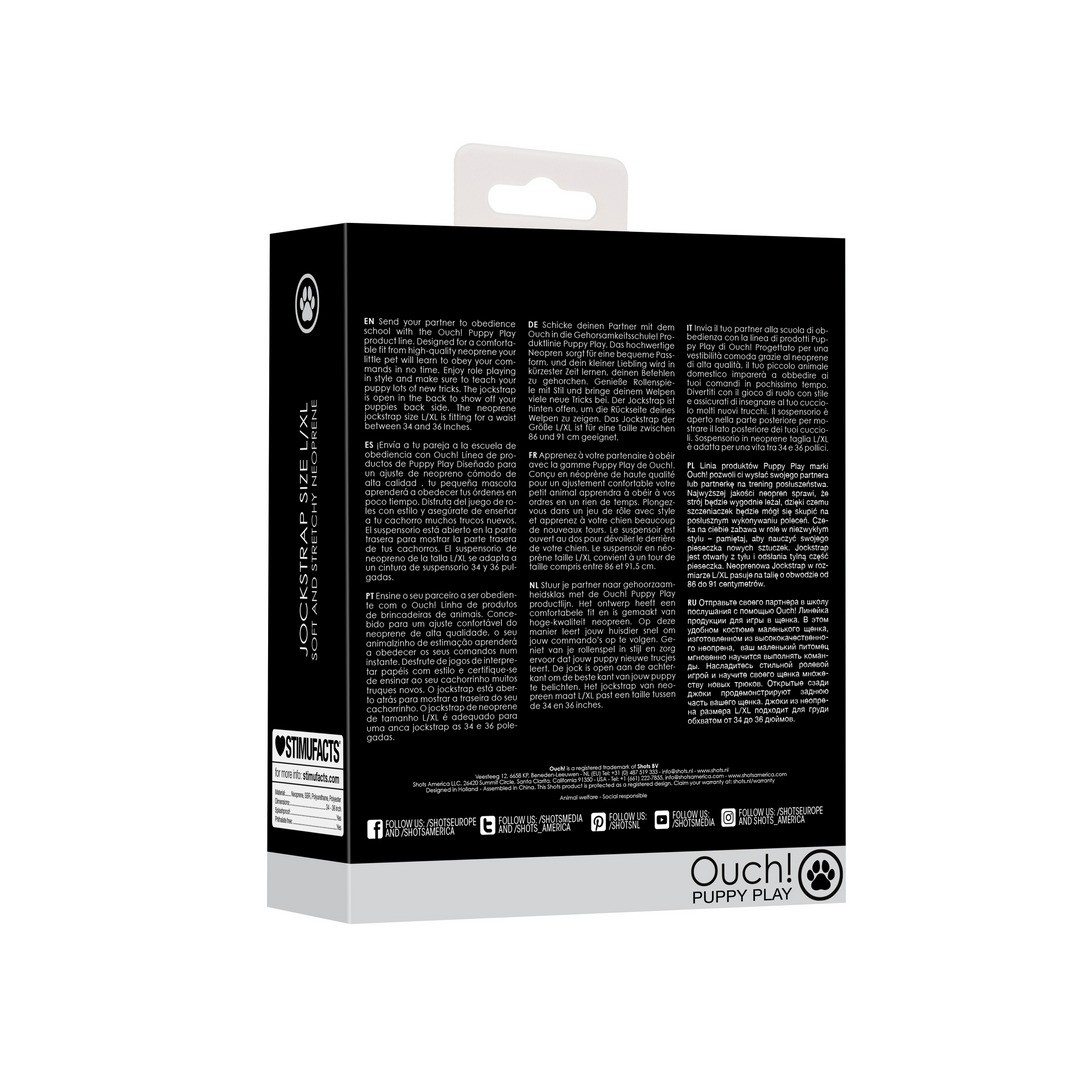 Отправьте своего партнера в школу послушания с помощью Ouch! Puppy Play. Созданный для удобной посадки из высококачественного неопрена, ваш маленький питомец быстро научится подчиняться вашим командам. Наслаждайтесь ролевыми играми в стиле и не забудьте научить щенка множеству новых трюков. Неопреновая шлейка размера L/XL подходит для талии от 34 до 36 дюймов.