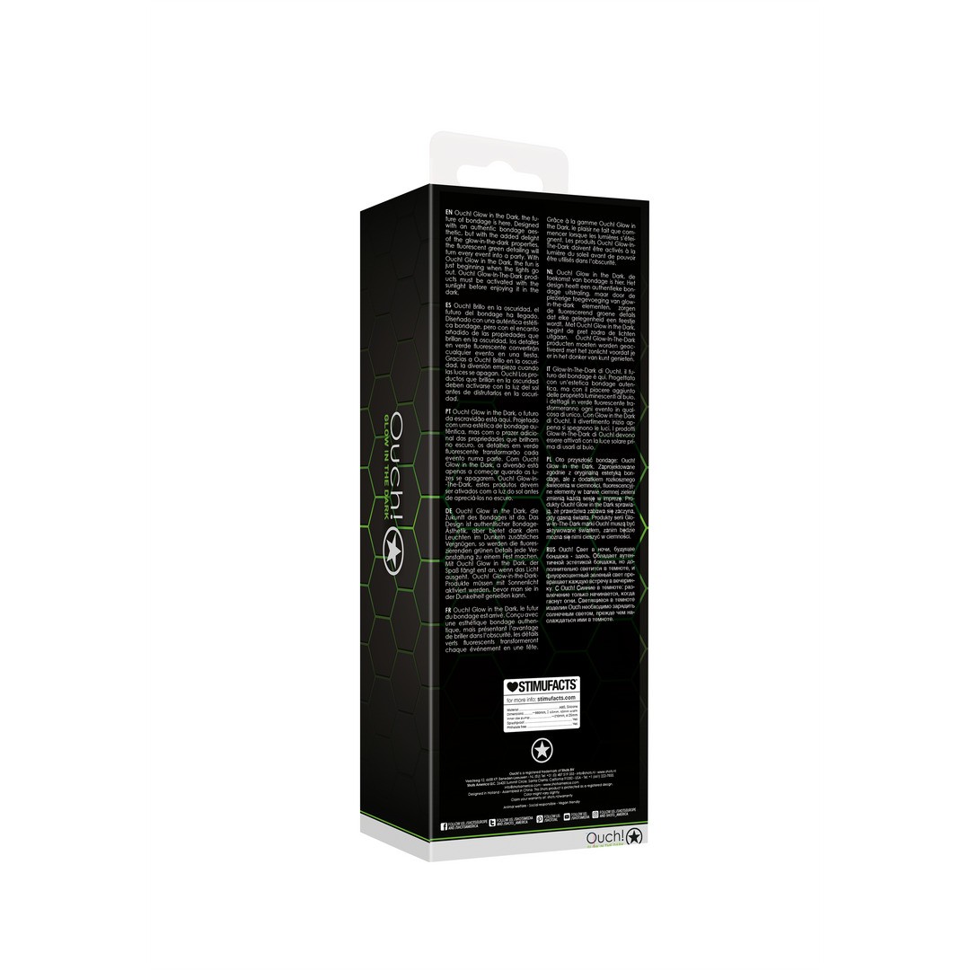 Ой! Glow in the Dark - будущее бондажа уже наступило. Флуоресцентные зеленые детали, выполненные в аутентичной эстетике бондажа и дополненные светящимися в темноте свойствами, превращают каждую сессию в уникальный опыт.