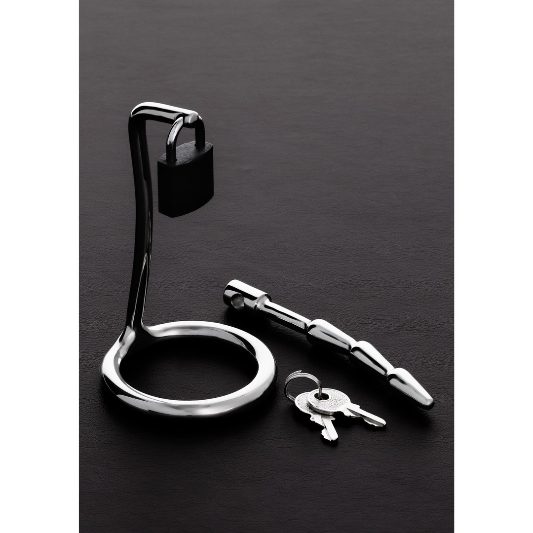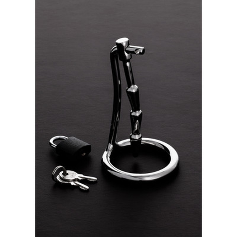 Изготовленный из нержавеющей стали, красиво изогнутый с тремя бугорками и конусообразной пробкой пенис с петушиным кольцом. Вы можете заблокировать ее с помощью прилагаемого замка. -Уникальная комбинация форм, которая предотвращает эрекцию.