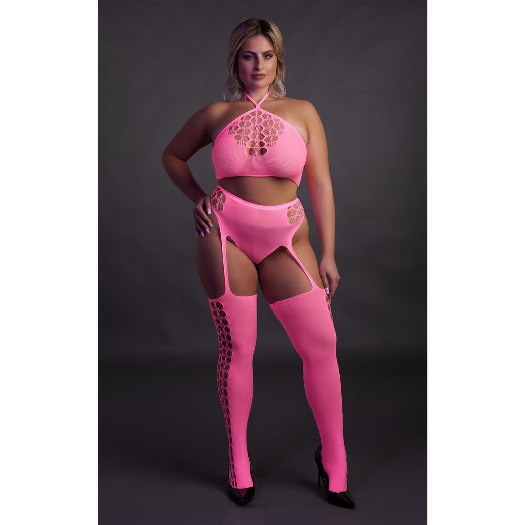 Наше неоновое белье - идеальное дополнение к вашей коллекции. Изготовленные из удобных, легко облегающих, эластичных материалов, они созданы для того, чтобы идеально облегать ваше тело. Используете ли вы их как одежду для вечеринок или как нижнее белье, эта привлекательная вещь обязательно выделит вас! Раскройте свою внутреннюю богиню с помощью этого потрясающего белья с УФ-активацией. Греческий вырез придает ему вау-фактор и заставляет вас выделиться, а также обратить внимание на удивительные чулки с подвязками, которые входят в комплект. Материалы с ультрафиолетовой активацией добавляют нотку таинственности и привлекательности. Легко облегающее платье из эластичного материала заставит вас зажигать по ночам. Доступны в неоново-розовом и неоново-зеленом цветах. Размеры от XS/ XL до XL/XXXXL