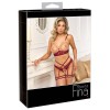 Соблазнительный комплект Abierta Fina, состоящий из бюстгальтера с открытыми чашками и стрингов с подвязками без промежности. Нежное кружево темно-красного цвета подчеркивается бархатными бретелями и аксессуарами в оттенке розового золота, создавая утонченный и провокационный образ. Материал мягкий и эластичный, что обеспечивает комфортную посадку.