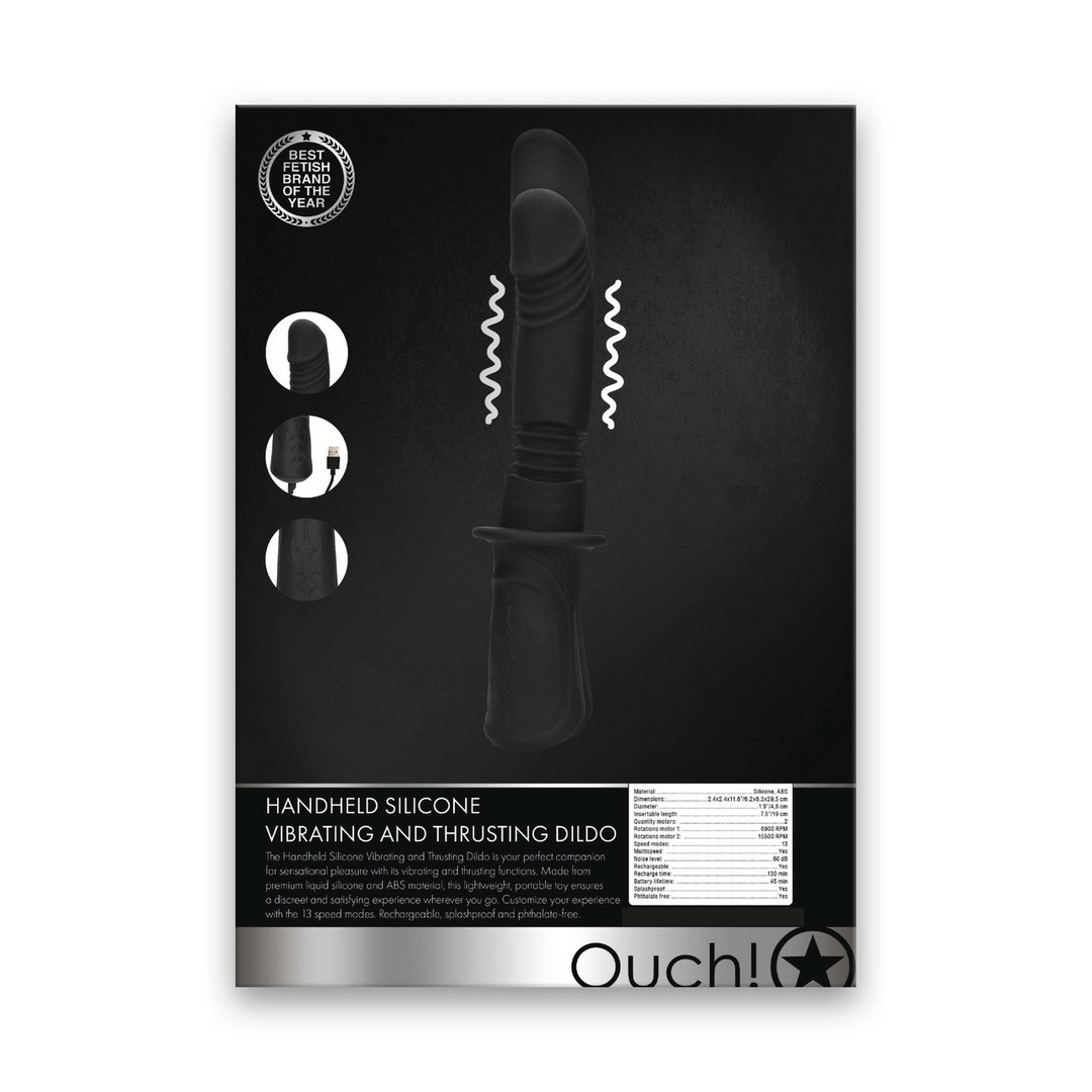 Ручной силиконовый фаллоимитатор с вибрацией и тягой (OU951BLK) en anglais.