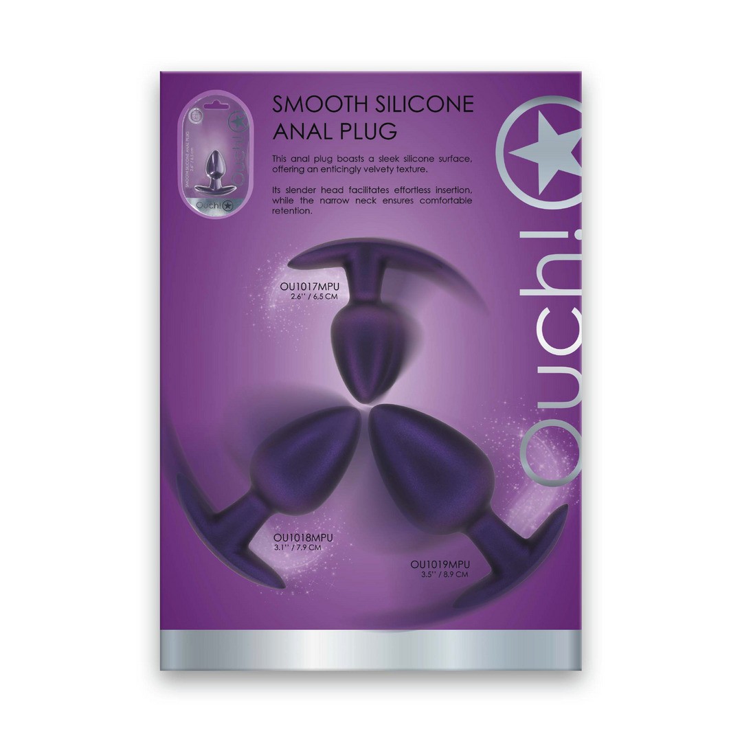 Лист продажи гладкой силиконовой анальной пробки (OU1017MPU - OU1018MPU - OU1019MPU) на английском языке.