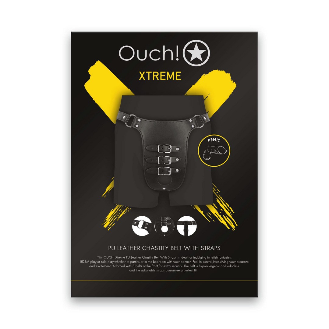 Pu Leather chastity belt with straps sell sheet (OU1031BLK) на английском языке.